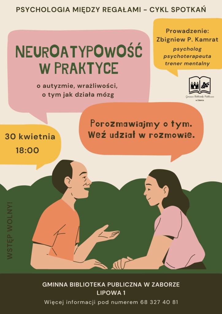 Już 30 kwietnia o godz. 18:00 zapraszamy do Biblioteki w Zaborze na drugie spotkanie z cyklu Psychologia między regałami.