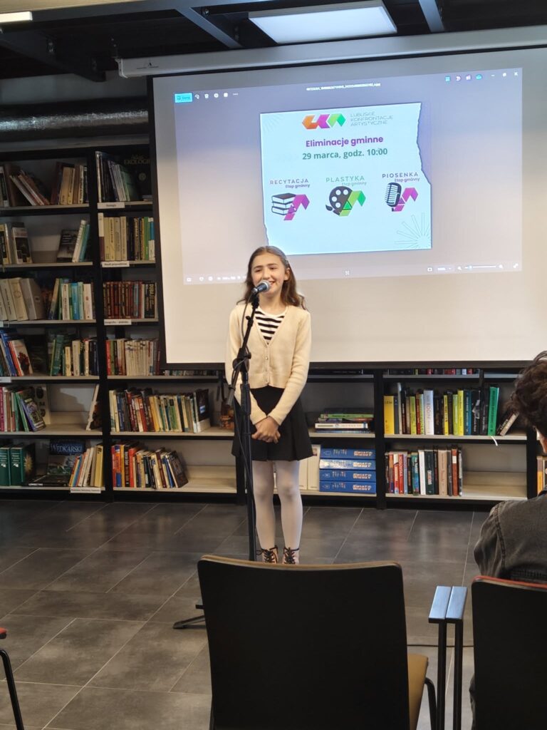 A to za sprawą finału Lubuskich Konfrontacji Artystycznych na poziomie gminnym. W naszej bibliotece odbyło się rozstrzygnięcie konkursów w kategorii Recytacja, Plastyka oraz Piosenka. Laureatom zostały wręczone nominacje, czyli przepustki do etapu powiatowego.